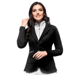 Biała koszulka jeździecka z diamencikami to połączenie elegancji i funkcjonalności. Materiał jest elastyczny, przewiewny i świetnie dopasowuje się do sylwetki, dzięki czemu koszulka jest bardzo wygodna podczas jazdy. Subtelne diamenciki dodają jej wyjątkowego blasku. Po kilku praniach nadal wygląda jak nowa. Natomiast w połączeniu z czarnym frakiem z diamencikami prezentuje się zjawiskowo! Jest perfekcyjnie skrojony, pięknie podkreśla sylwetkę! Materiał jest wysokiej jakości, nie gniecie się i świetnie układa podczas jazdy.